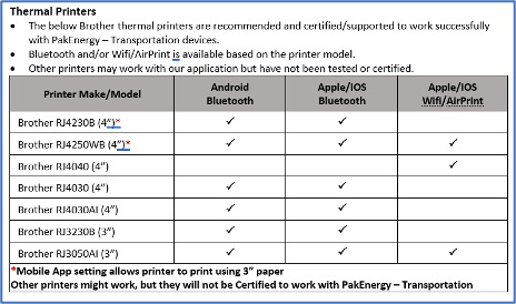 Recommended Printers